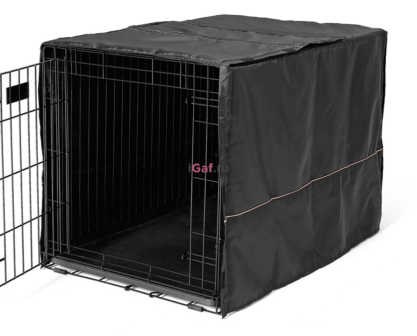 Используя чехол для клетки, вы можете полностью ее закрыть и, таким образом, организовать уютное спокойное место для вашей собаки в условиях. Конструкцией предусмотрено полное открывание фронтальной или боковой дверцы. Используя такие конструктивные особенности, вы можете быстро превратить клетку в уютную будку.