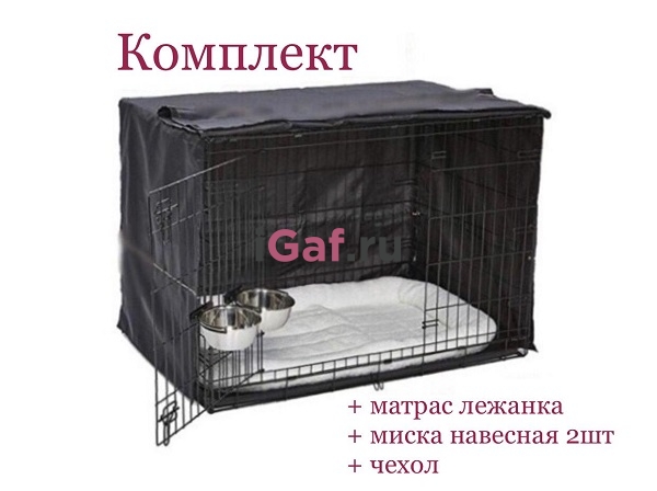 Клетка для собак №3 черная (ш 76 см./в 58 см./г 53 см) + МАТРАС, ЛЕЖАНКА + ЧЕХОЛ + МИСКА 300 мл 2шт