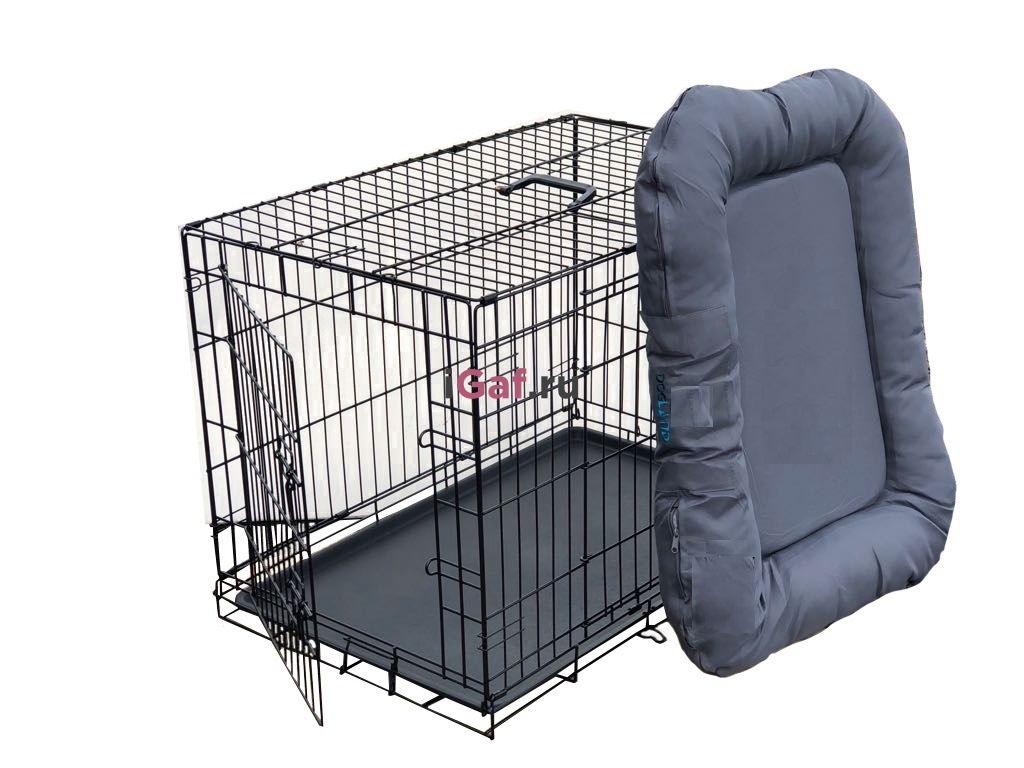 Клетка №3 черная (ширина 76 см./высота 56 см./глубина 48 см) + лежанка матрас "Грей" 75х55х10 см