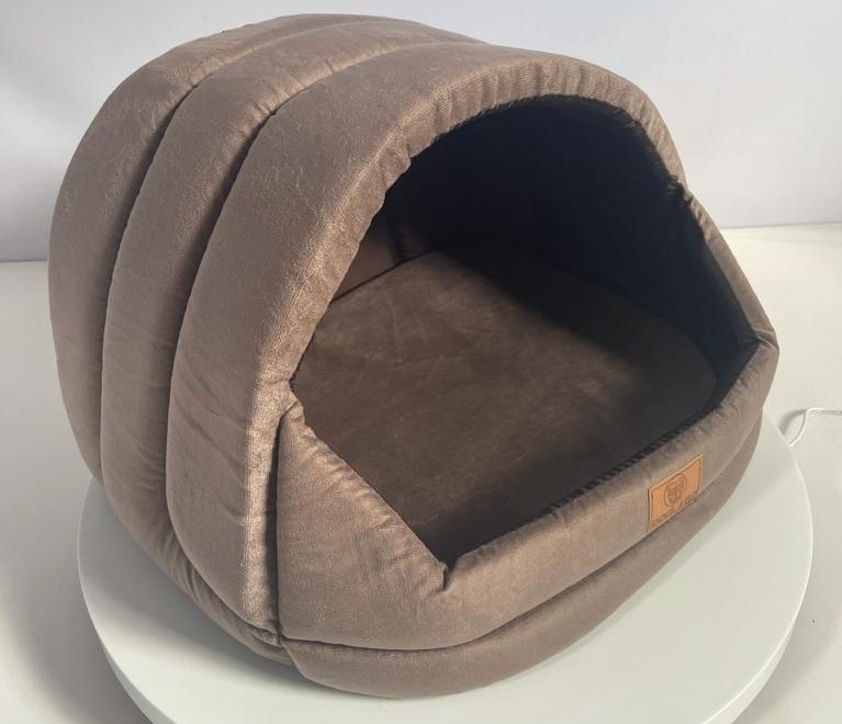 Размер 50х42х34 см Домик мягкий для кошек и собак. Модель выполнена из высококачественного и износотойкого материала оригинальной расцветки, прекрасно держит форму. В комплекте съемный 2-х сторонний матрас (теплая и холодная сторона). Можно стирать.