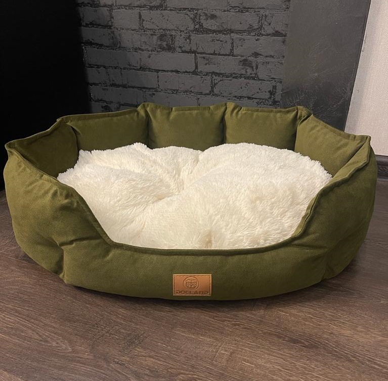 Лежанка для собак " Марсель зеленый ,белая подушка
