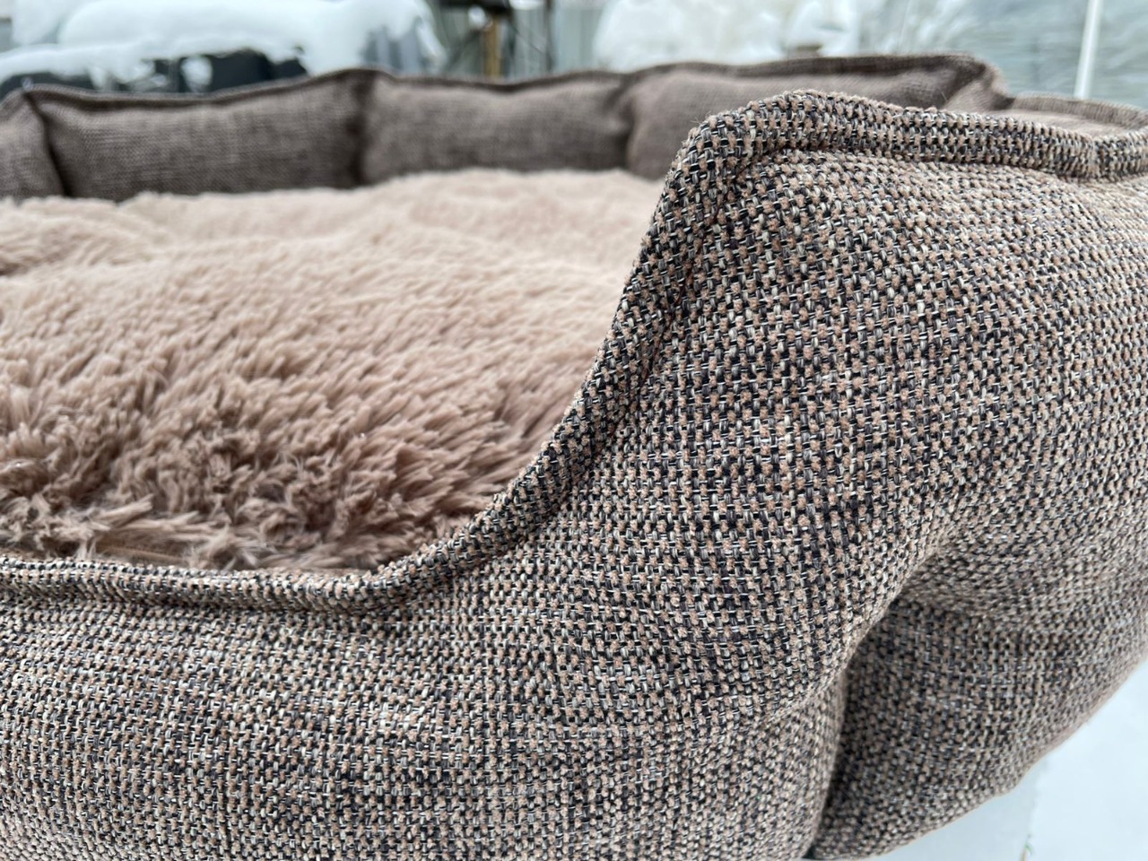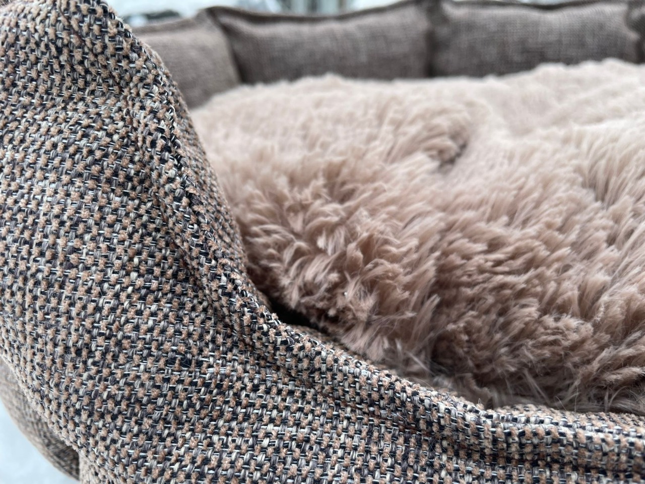 Мягкая и уютная лежаночка. Хорошо вписывается в любой интерьер за счет сочетания мебельных тканей . Выполнена из качественных материалов, что при своевременном уходе за изделием продлевает срок эксплуатации данной модели. Лежанка рассчитана на животных мелких и средних пород.