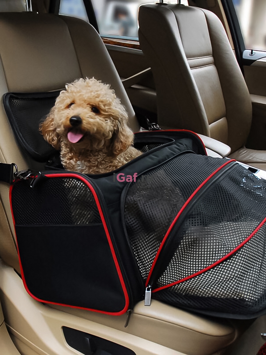 внутри переноски есть карабин для поводка и съемная мягкая подушка.