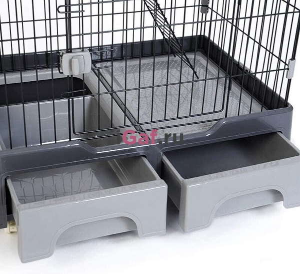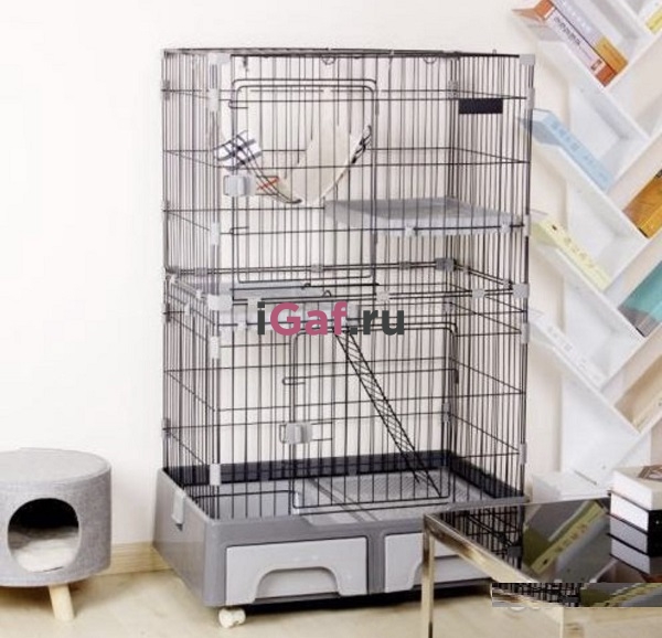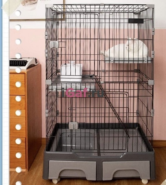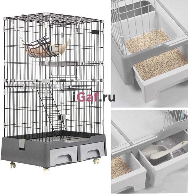 Двухэтажная клетка для кошек изготовлена из металла и покрыта специальным черным покрытием Electro-Coat, которое увеличивает срок ее эксплуатации. Подойдет для содержания как одного, так и нескольких животных. Клетка оснащена двумя независимыми фронтальными дверьми с надежными замками-задвижками. В комплект также входит 2 полки для удобства расположения животных и выдвигающийся лоток, который легко мыть и чистить. Клетка на колесах, полностью разборная, удобна для транспортировки. Высококачественные товары DOGLAND для транспортировки, комфорта и безопасности животных, позволят вам обустроить пространство для вашего питомца/
