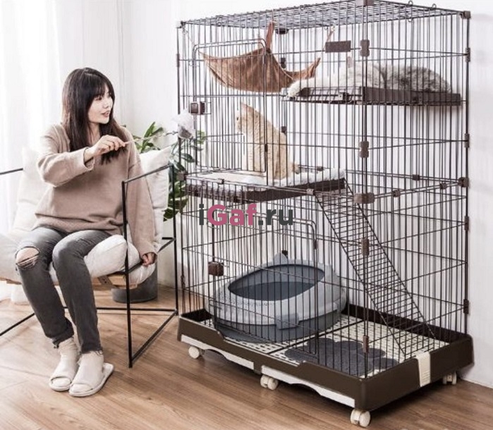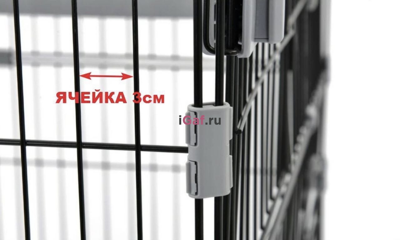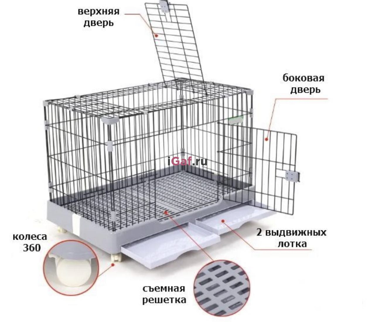 Клетка-вольер для животных (хорьков, кроликов, шиншилл, также подходит для содержания кошек) с выдвижными пластиковыми поддономи , полностью изолированным от животного мелкой выдвижной пластикой решеткой. Дно клетки представляет собой прочную сетку, которая упрощает уборку — все отходы проваливаются сквозь ячейки дна, оказываясь в поддоне. Пластиковый поддон с высокими бортиками легко и просто выдвигается для очистки. Пластик, из которого выполнено дно, долговечен, его легко мыть. Не впитывает запахи. Крепкие прутья клетки не гремят, эмаль не облетает. Большие удобные дверцы с надежными запирающими механизмами на фасаде клетки.