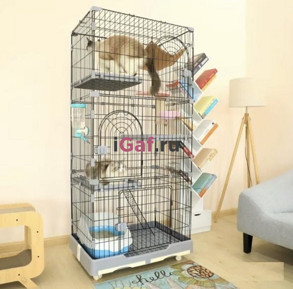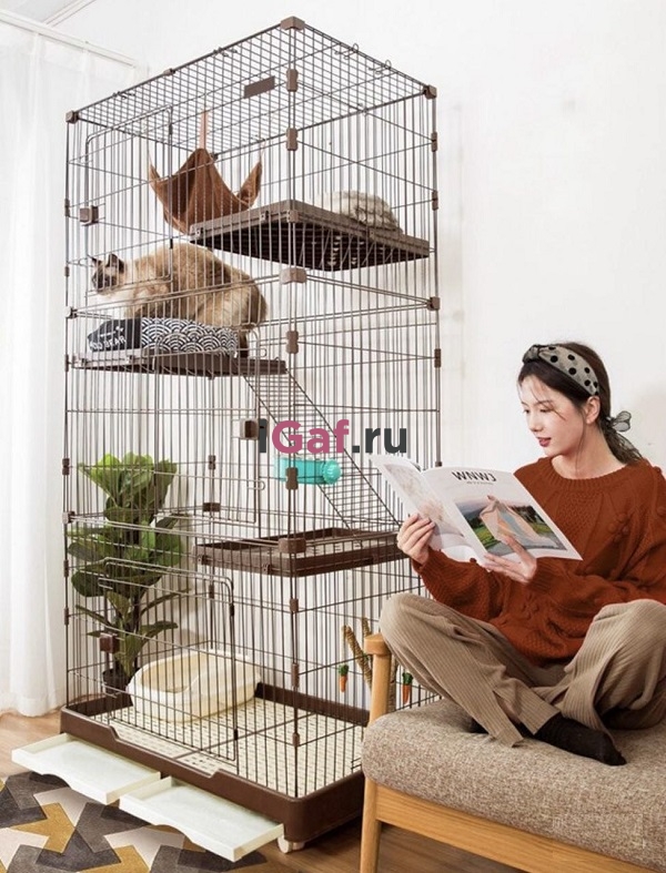 Клетка-вольер для животных (хорьков, кроликов, шиншилл, также подходит для содержания кошек) с выдвижными пластиковыми поддономи , полностью изолированным от животного мелкой выдвижной пластикой решеткой. Дно клетки представляет собой прочную сетку, которая упрощает уборку — все отходы проваливаются сквозь ячейки дна, оказываясь в поддоне. Пластиковый поддон с высокими бортиками легко и просто выдвигается для очистки. Пластик, из которого выполнено дно, долговечен, его легко мыть. Не впитывает запахи. Крепкие прутья клетки не гремят, эмаль не облетает. Большие удобные дверцы с надежными запирающими механизмами на фасаде клетки.